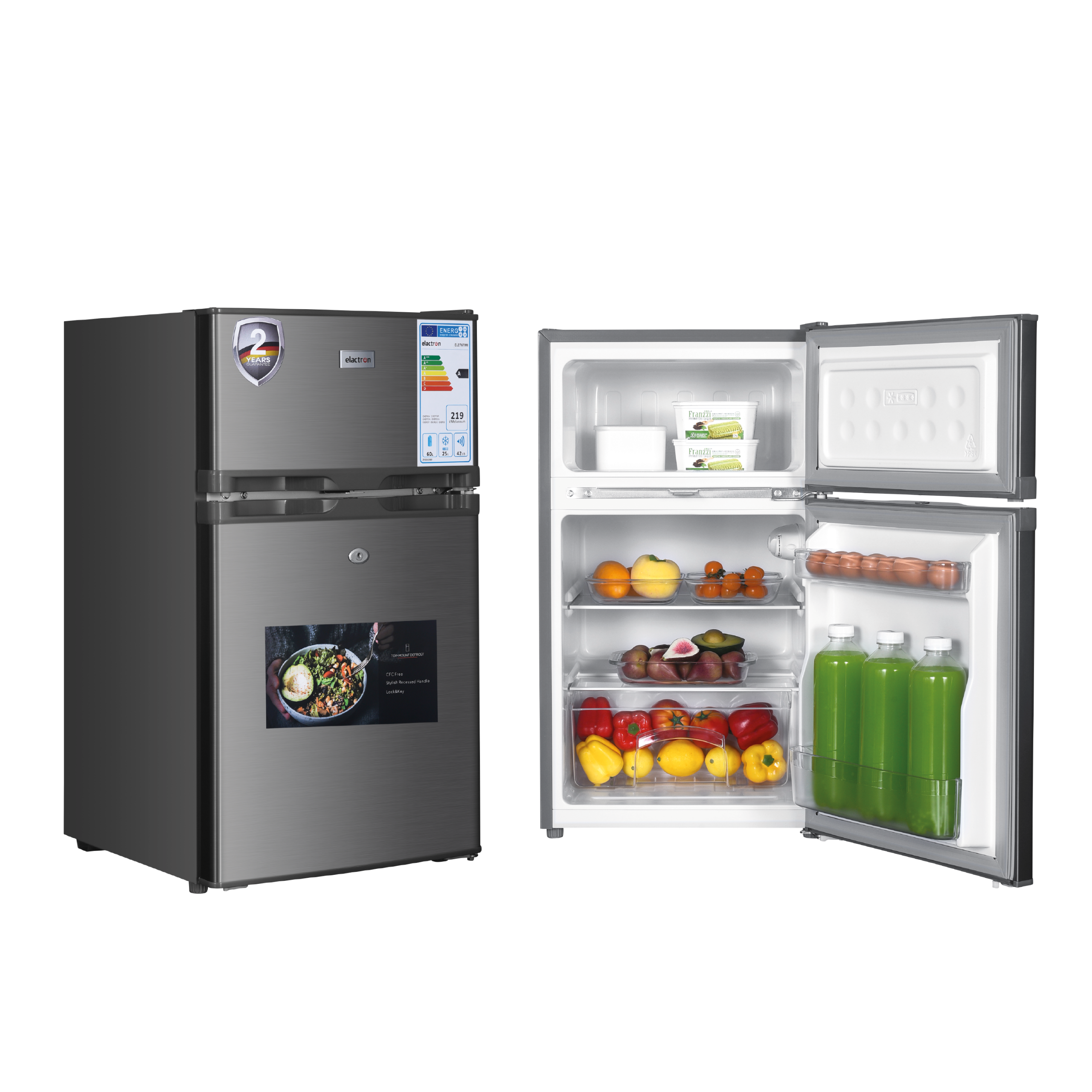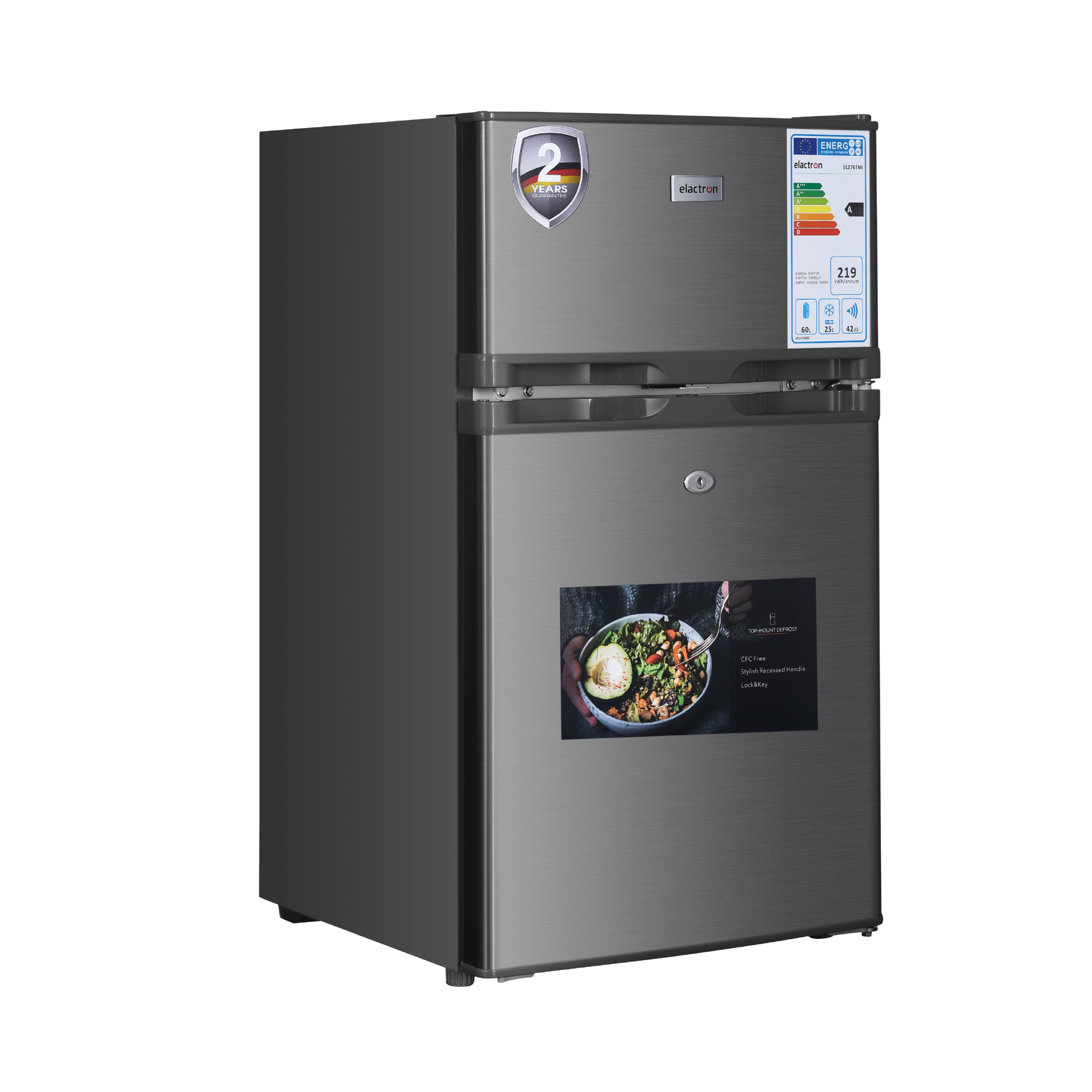 Son design moderne en inox argenté apporte une touche élégante et contemporaine à votre cuisine, tout en assurant robustesse et facilité de nettoyage. Malgré sa grande capacité, le réfrigérateur Elactron EL-276TMDX reste compact et facile à intégrer, avec un poids de seulement 31 kg.